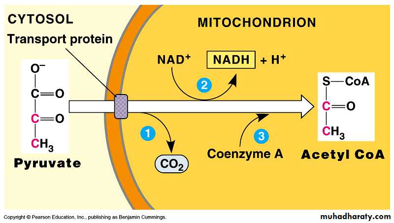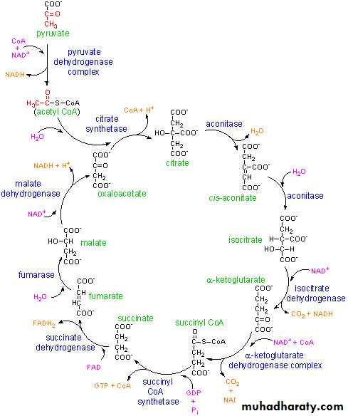 2- Krebs cycle: After oxidation of pyruvate to acetyl CoA, acetyl CoA enters the Krebs cycle for the aim of production of ATP.