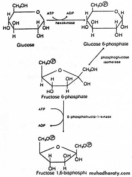 1) Priming stage: D-Glucose + 2ATP D-fructose 1,6-biphosphate + 2ADP + 2) Splitting stage : D-Fructose 1,6-biphosphate 2 D-Glyceraldehyde 3-phosphate