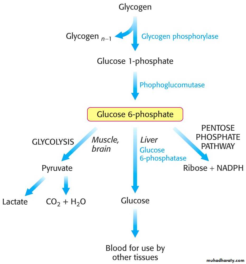 5- Glycogenolysis: Degradation of glycogen to glucose when glucose in short supply.