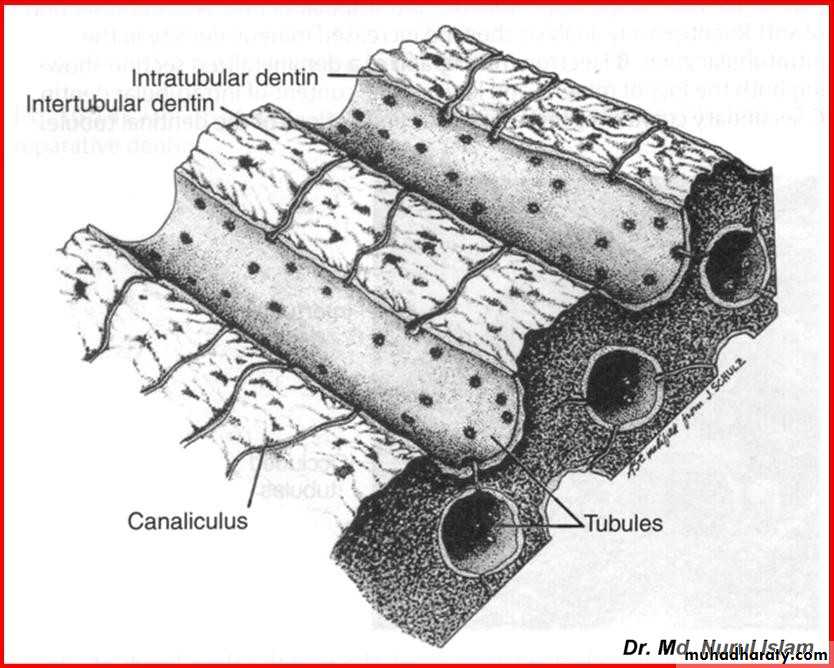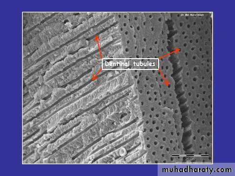 The dentin composed mainly from:-• Dentin tubules.