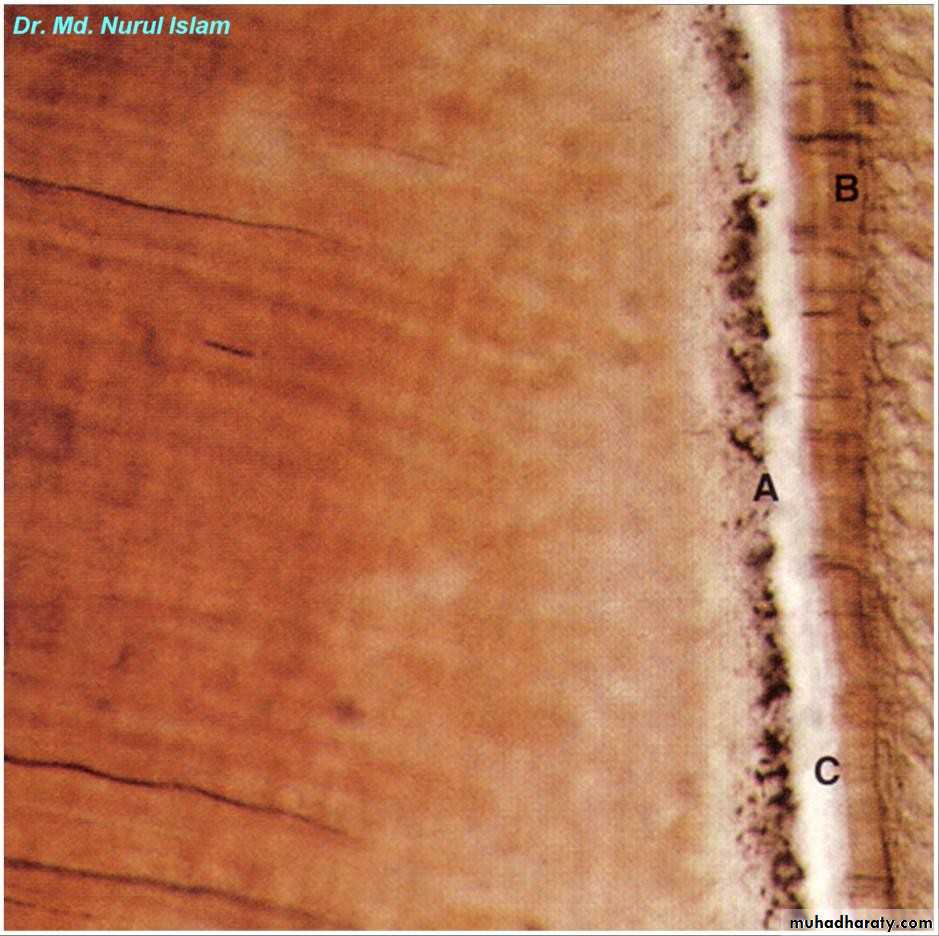 • It’s black granular zone In the roots near the cemento-dentinal junction• hypo-mineralized areas of dentin around the dentinal tubule called the Tomes granular layer
