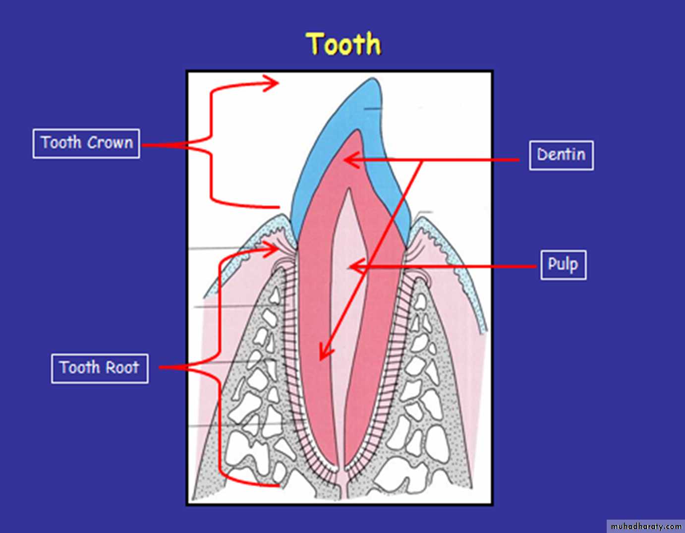 Dentin forms the bulk of the tooth. It’s covered by enamel in crown and by cementum in root.A vascular