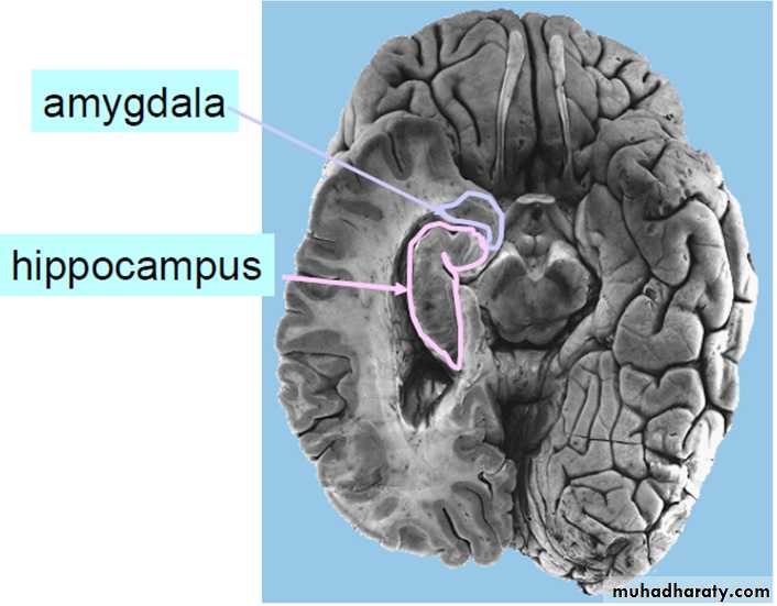 The amygdala is a complex of multiple small nuclei located immediately beneath the cerebral cortex of the medial anterior pole of each temporal lobe. The amygdala receives neuronal signals from all portions of the limbic cortex, as well as from the neocortex of the temporal, parietal, and occipital lobes—especially from the auditory and visual association areas. Because of these multiple connections, the amygdala has beencalled the “window” through which the limbic system sees the place of in the world. Stimulating the Amygdala had effect on