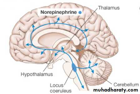 2. The noradrenergic neuron systemoriginates in the locus coeruleus of the pons.
