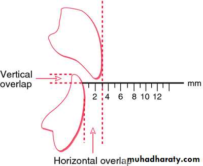 Over bite: the vertical distance between the incisal edges of maxillary and mandibular teeth.