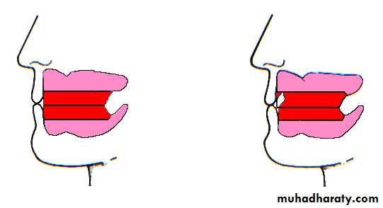 the lips a “pouched out”appearance.The teeth set too far lingually giving