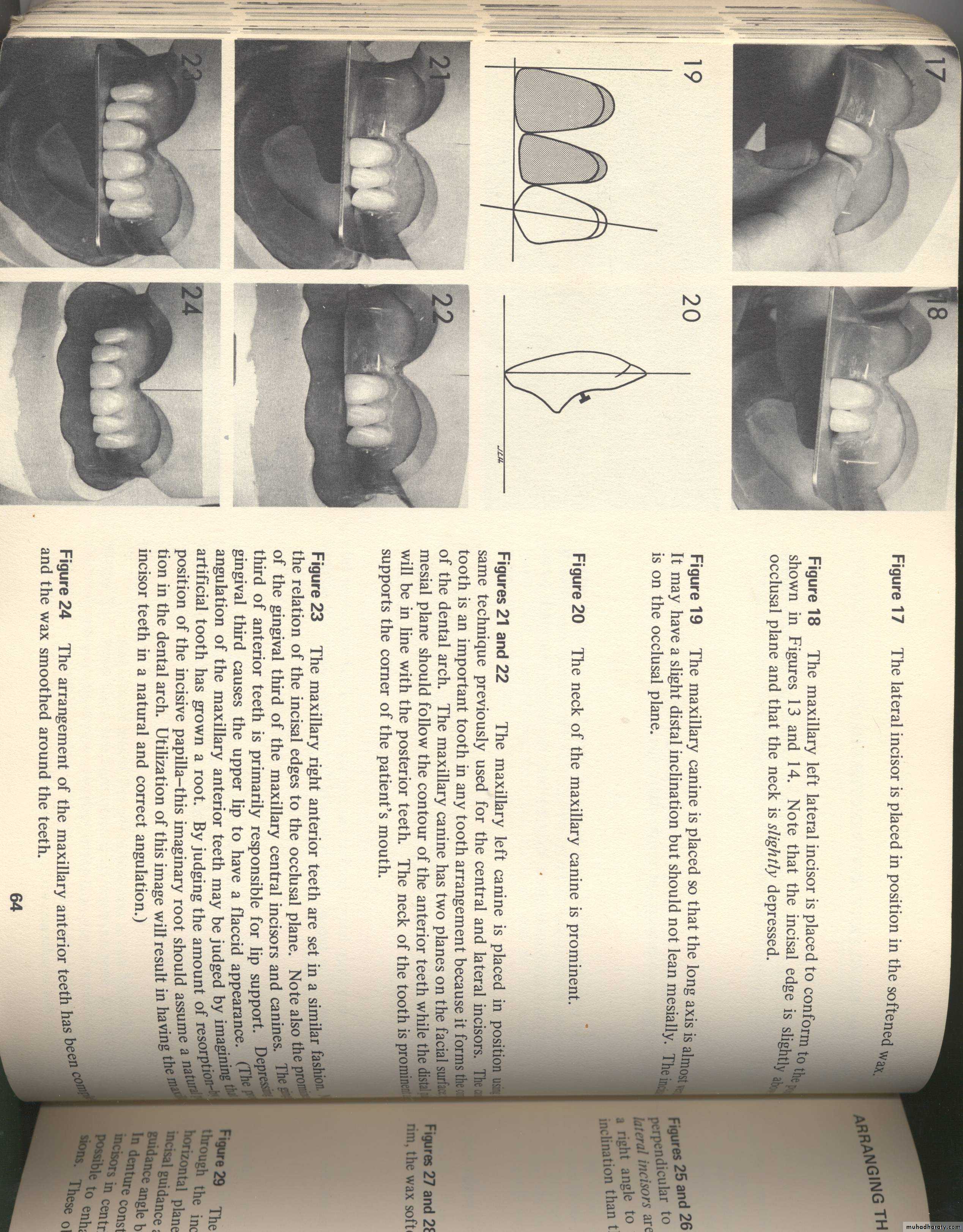 Set the rest of the anterior teeth on the right side according to the curve defined by (occlusal rim).Use a flexible plastic ruler to verify that the incisal portion of the tooth’s labial surface is properly located and in contact with the anterior curvature of the occlusion rim.