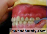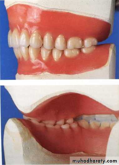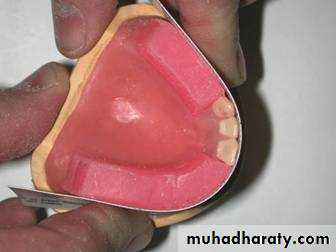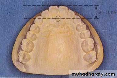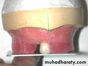 • The incisal edge should form (1-2mm) horizontal and vertical overlap in respect with upper central incisor (above the occlusal plane.