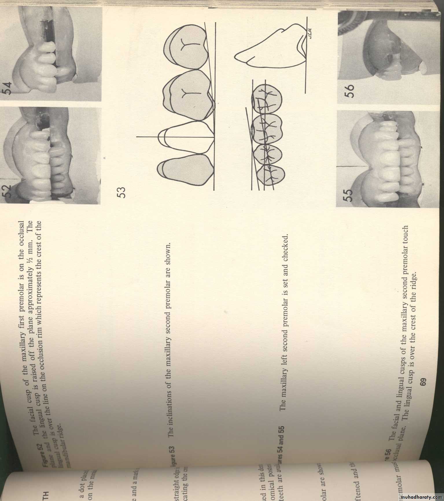 • The cusp tip touch the occlusal plane.• The neck of tooth should be prominent (support the corner of the mouth).