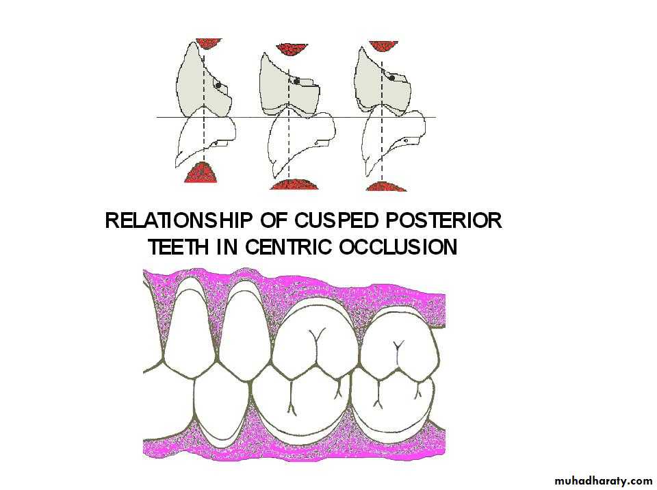Lingual cusps of maxillary posterior teeth occlude in the central fossae of the mandibular posterior teeth.