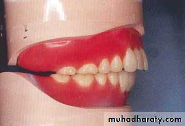 • Crest of the ridgeUpper anterior teeth anterior to the crest of the upper ridge