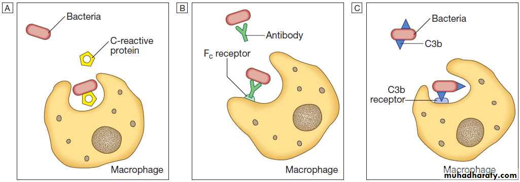 Opsonisation. Phagocytosis of microbial products may be augmented by several opsonins.