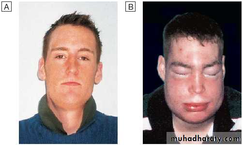 by local trauma or infection. Multiple parts of thebody may be involved, especially the face, extremities,