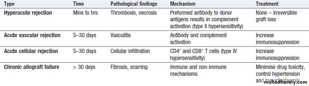 Transplantation provides the opportunity for definitivetreatment of end-stage organ disease. The major complications are graft rejection, drug toxicity and infection