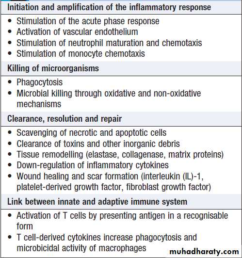 Macrophages, like neutrophils, are capable of phagocytosis and killing of microorganisms but also play an important role in the amplification and regulation of the inflammatory response .