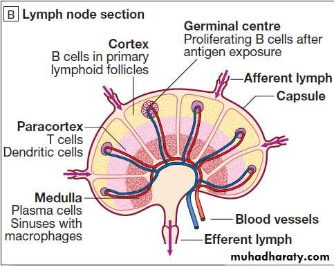 carry microbial antigens to regional lymph nodes, where they interact with T cells and B cells to initiate and shape the adaptive immune response.