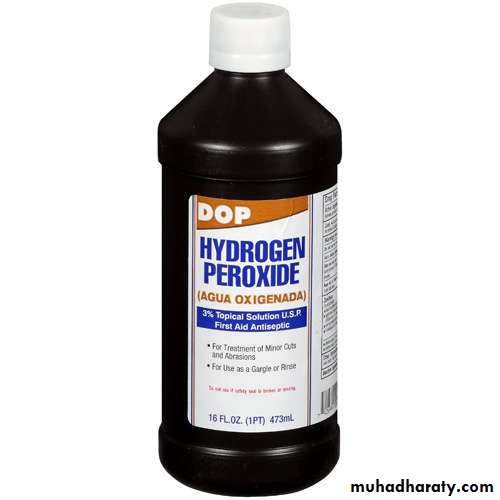 e.g. Hydrogen peroxide(H2O2), these agents have the advantage that their decomposition product are not toxic & do not injure the environment.