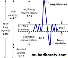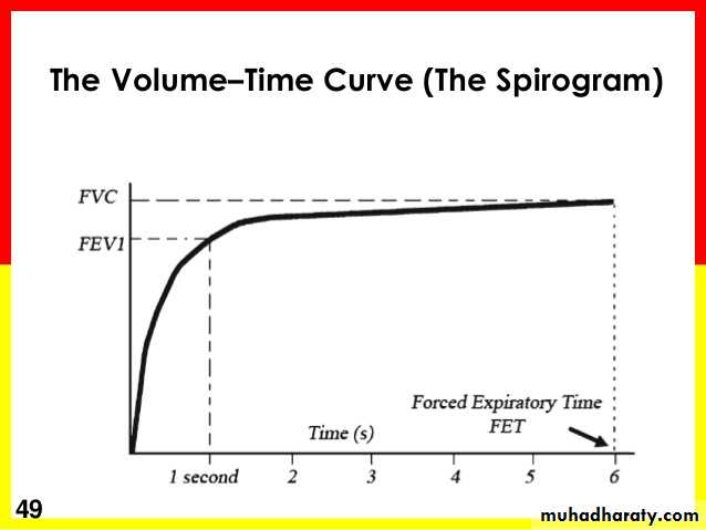 Timed vital capacity (forced expiratory volume-1 sec, FEV1): It is the volume of air expired during the first second of forceful expiration.