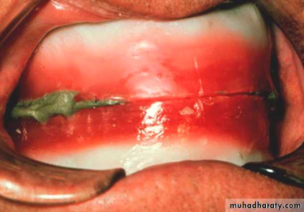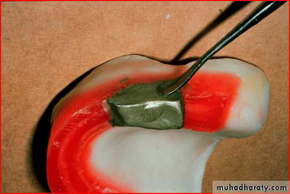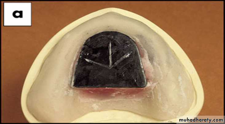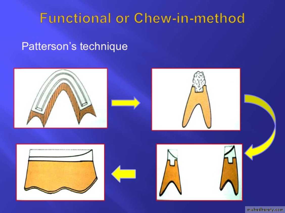 • A 1:1 mixture of pumice and dental plaster is loaded into the trench. When the patient moves his mandible, compensating curves on the mixture will produced, and the height of the mixture is also reduced.