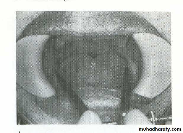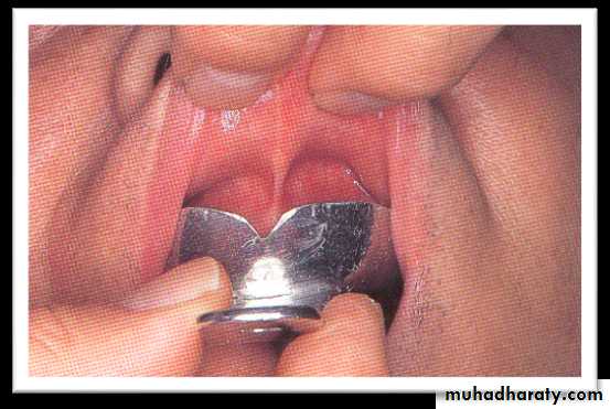 The space available in the mouth for upper impression is studied carefully by observation of the width and height of the vestibular spaces with mouth partly open.
