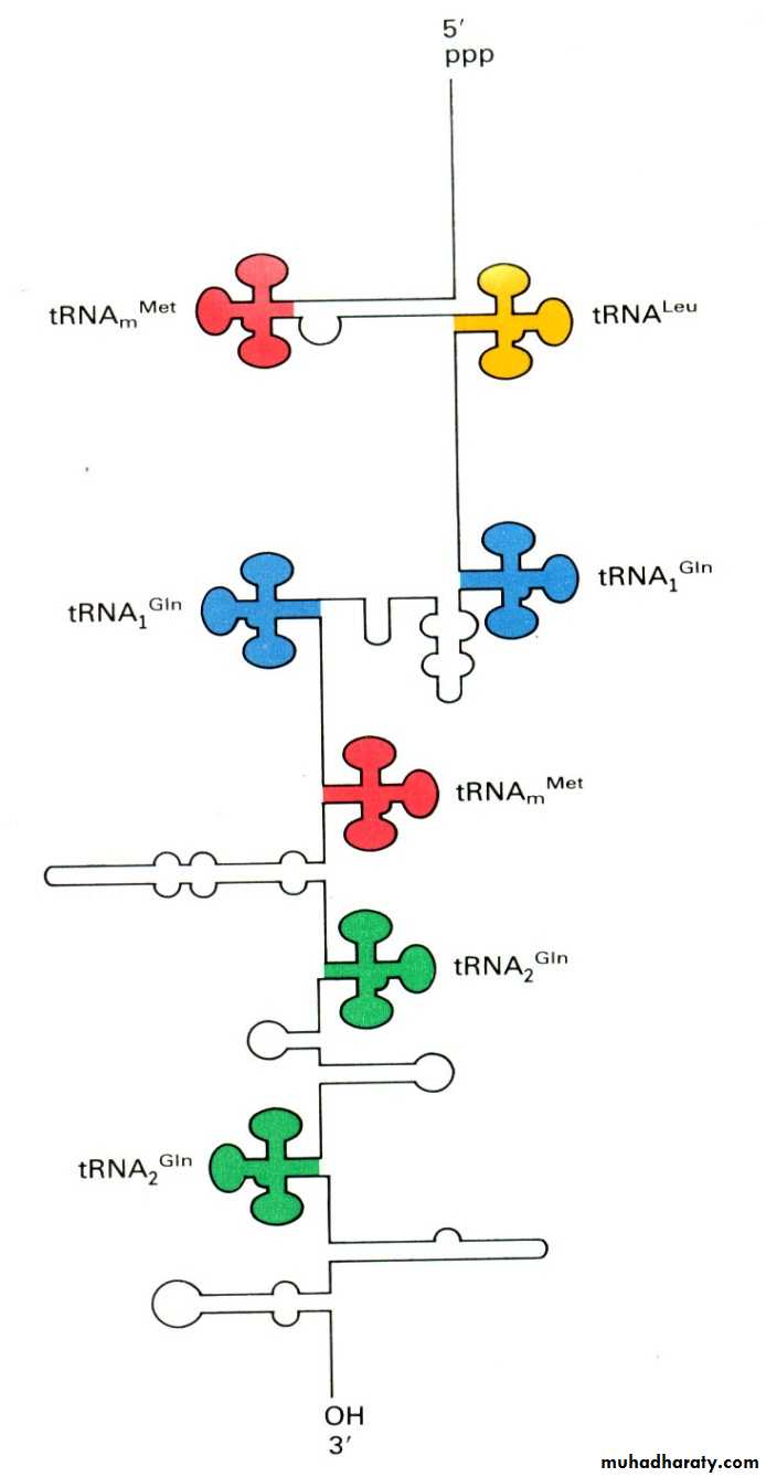• Eukaryotic systems have three kinds of RNA polymerases, each of which is a multiple-subunit protein and responsible for transcription of different RNAs.