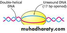 • RNA-pol recognizes the TTGACA region, and slides to the TATAAT region, then opens the DNA duplex.• The unwound region is about 171 bp.