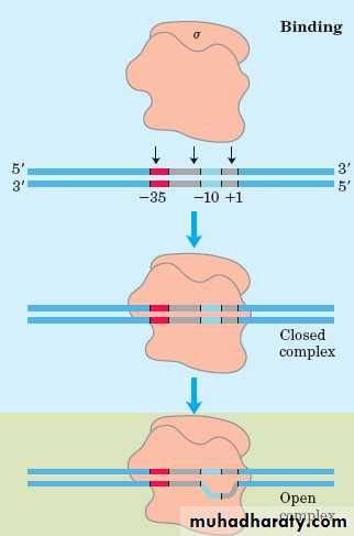 • The -10 region of TATAAT is the region at which a stable complex of DNA and RNA-pol is formed.