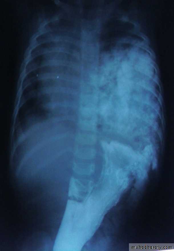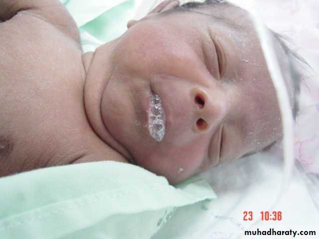Presentation :-Polyhydraminous.Frothy secretion.Respiratory distress.Resistance to NG tube insertion.Plain X-ray.
