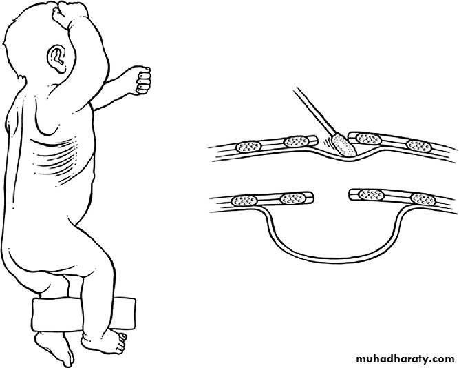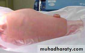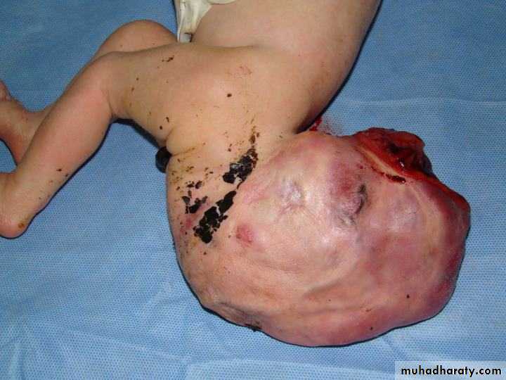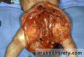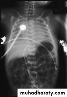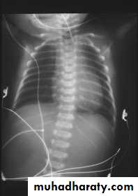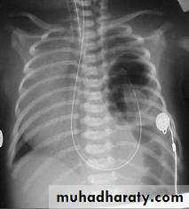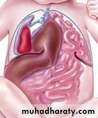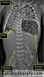 Treatment: ➣Resuscitation NG tube Bag mask ventilation is contraindicated Endotracheal intubation + oxygen. Urinary catheter Arterial & venous line Fluid therapy Echo study Refer to pediatric surgical center
