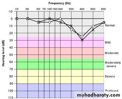 PTA: The earliest changes of acoustic trauma is SNHL at 4kHz which may be transient(temporary threshold shift). If the condition is repeated, SNHL will affect all frequencies.