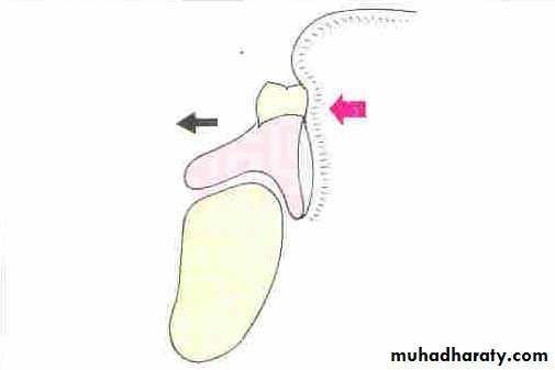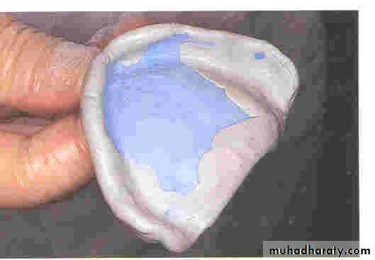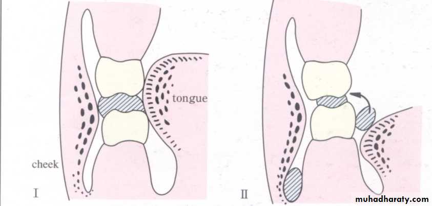 6. Tongue dorsum side is pressed against the back of upper comp. dent. to prevent it’s dropping. While the tip is pressed down-word against the ant. Ling. Surf. Of lower dent. when lower lip tend to force the dent. back-word.