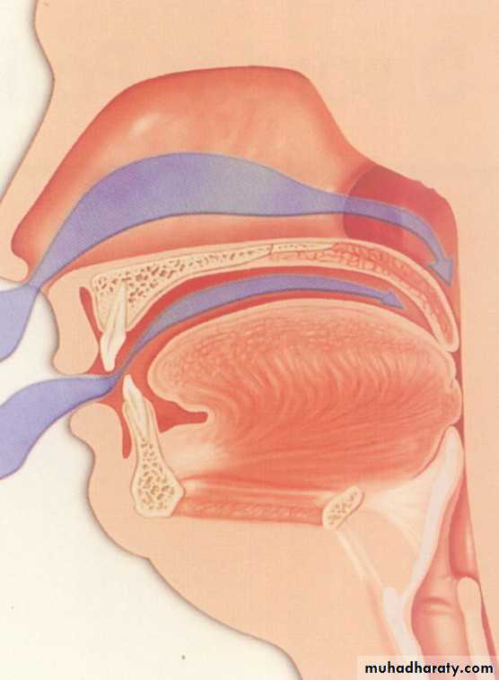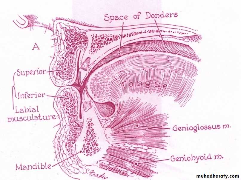1- Tongue size:* Occupies the cavity between the ridges, teeth & hard palate except for a small air space-less than 1cm in height-beneath the hard palate called THE SPACE OF DONDERS