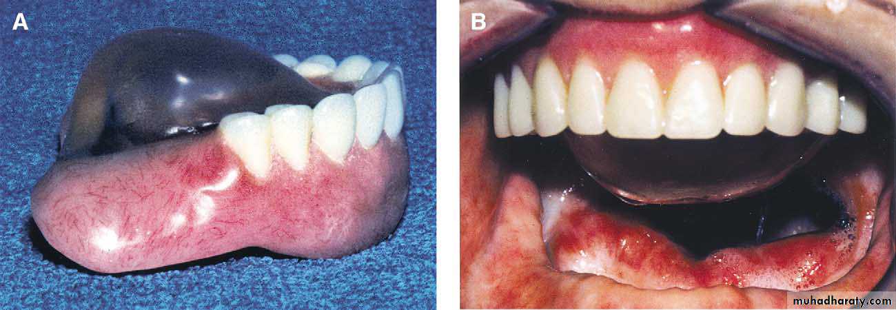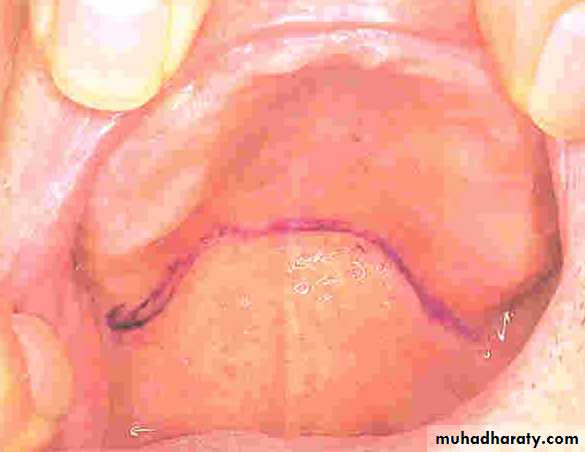 b- The lateral borders & the tip of the tongue must have freedom to move naturally during speech & deglutition.