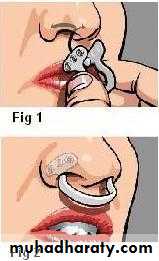 • reposition the tongue in an anterior position by securing it with negative pressure in a soft plastic bulb.• with plastic depressor that comes into direct contact with the tongue base.