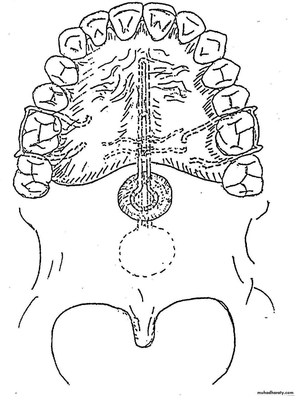 1- The tip of the tongue controls the bolus of food & places it on the occlusal surface of the teeth.2- The lingual extensions cover the sublingual glands.