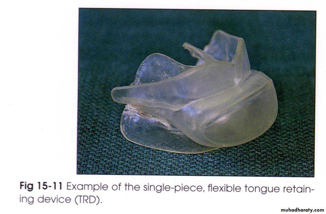 • Made from non rigid vinyl material & the patient is instructed to protrude the tongue into the hollow bulb & the vacuum hold it there for at least 6 hours of sleep.