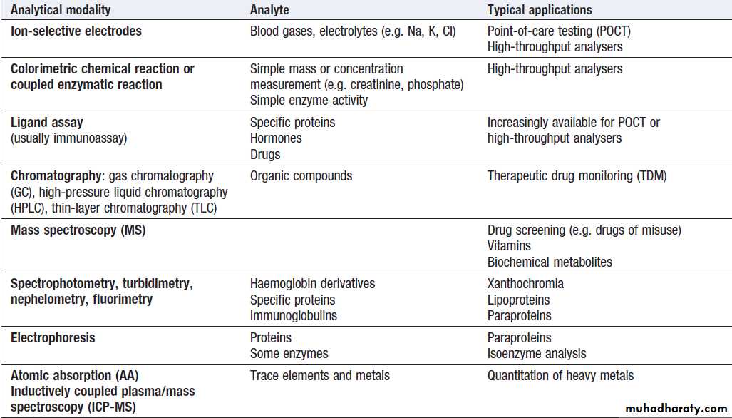 Range of analytical modalities used in the clinical biochemistry laboratory
