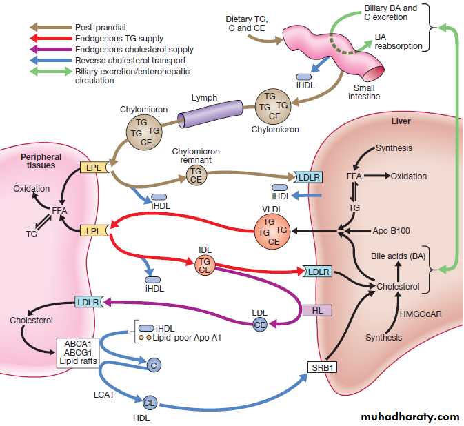 colestyramine, colestipol and colesevelam. These preventthe reabsorption of bile acids, thereby increasing de novo bile acid synthesis from hepatic cholesterol. As with ezetimibe, the resultant depletion of hepatic cholesterol up-regulates LDL receptor activity and reduces LDL-C in a manner that is synergistic with the action of statins. Resins reduce LDL-C and modestly increase HDL-C, but may increase TG. They are safe but may interfere with bioavailability of other drugs. Colesevelam has fewer gastrointestinal effects than older preparations that are less well tolerated. Development of specific inhibitors of the intestinal bile acid transporter may further improve tolerability of this class of agent.