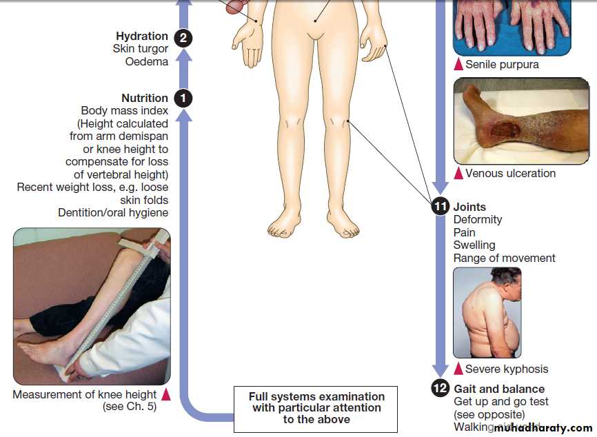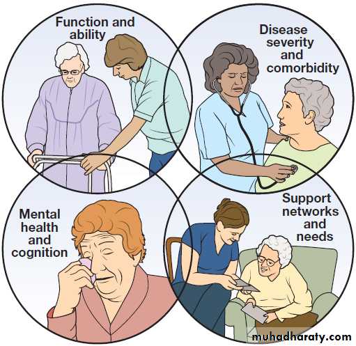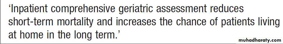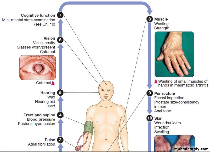 Geriatric medicine is concerned particularly with frail old, in whom physiological capacity is so reduced that they are incapacitated by even minor illness. They frequently have multiple comorbidities, and acute illness may present in non-specific ways, such as confusion, falls or loss of mobility and day-to-day functioning. These patients are prone to adverse drug reactions, partly because of polypharmacy and partly because of age-related changes in responses to drugs and their elimination . Disability is common, but patients’ function can often be improved by the interventions of the multidisciplinary team .