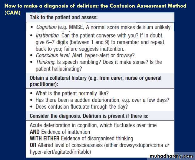 pre-morbid level of cognition. Delirium may be the first