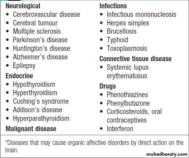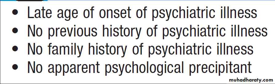 depressive psychosis. There is an association with a personal or familial history of bipolar disorder. Delirium is