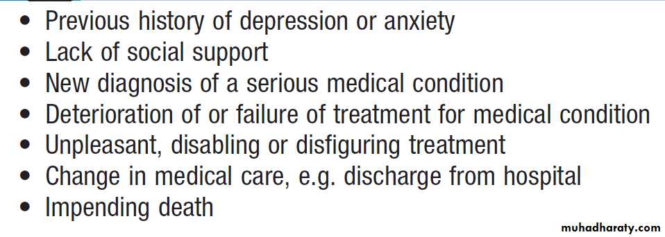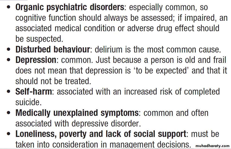In acute medical wards of general hospitals, organic disorders such as delirium (20–30%) are prevalent;