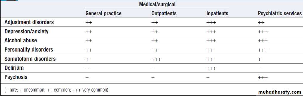 Prevalence of psychiatric disorders by medical setting