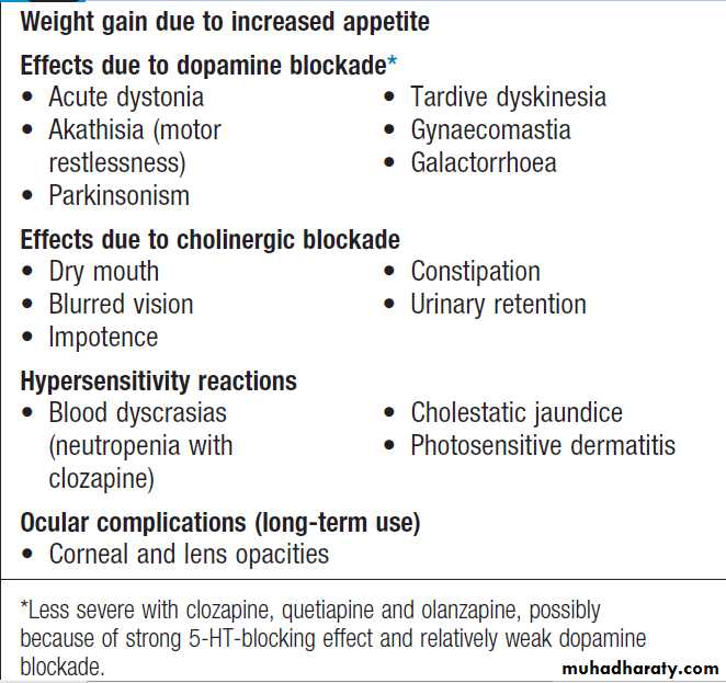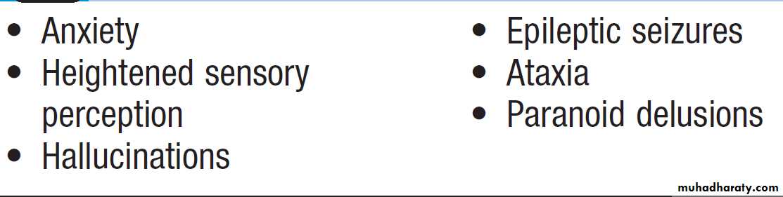 are most common (10%) and psychosis is rare (1–2%);