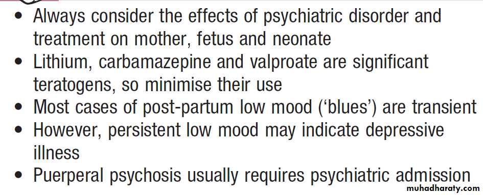 be considered in the differential diagnosis. Admission to a psychiatric mother and baby unit may be required.