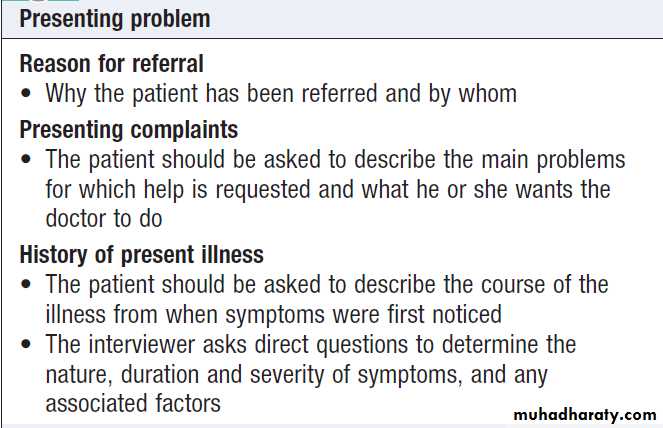 • elicit the symptoms, history and background information