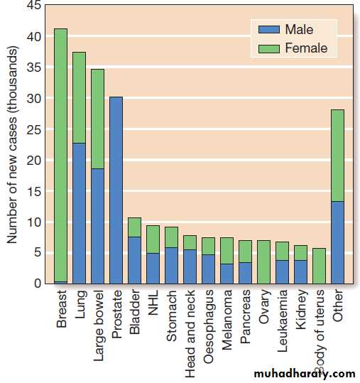 an estimated worldwide incidence of 10 million newcases per year, 46% of which are in developed countries.