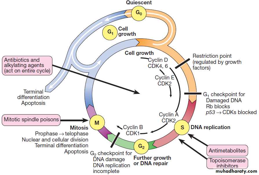 The cell cycle and sites of action of chemotherapeutic agents.