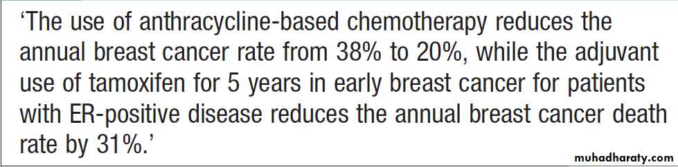and factors that increase the duration of oestrogen exposure, such as nulliparity, early menarche, late menopause and unopposed HRT, increase the risk. Endometrial cancer is 10 times more common in obese, and this is thought to be due to elevated levels of oestrogens.