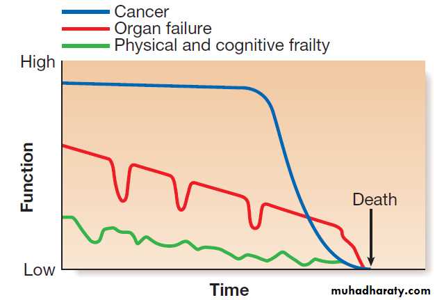 chronic diseases when the death is considered to be foreseeable or inevitable. Doctors rarely know exactly when a patient will die but we are often aware that the risk of dying is increasing and that medical interventions are unlikely to prolong life or improve function.